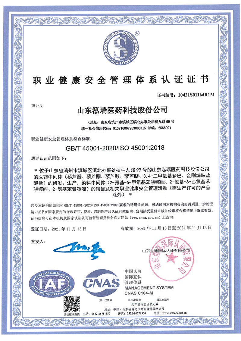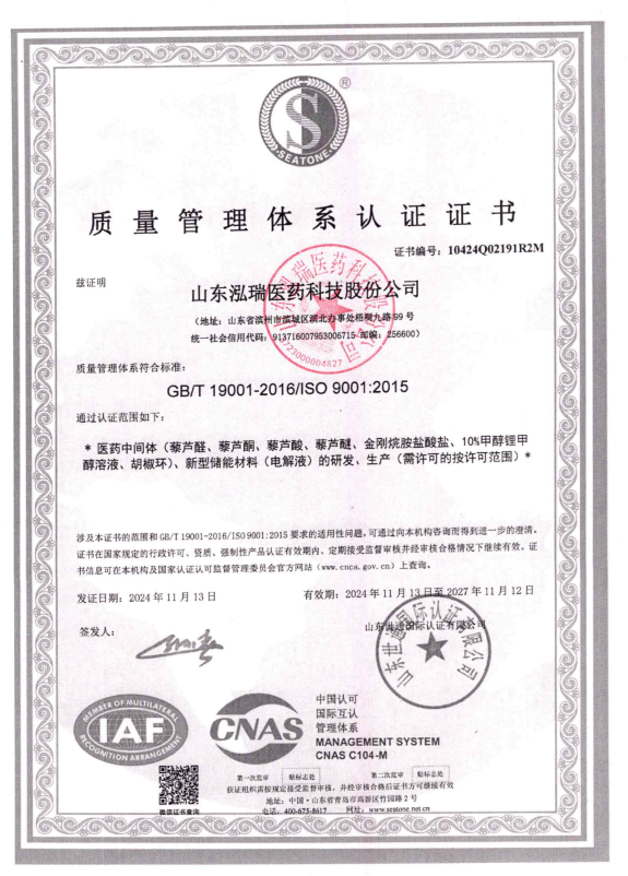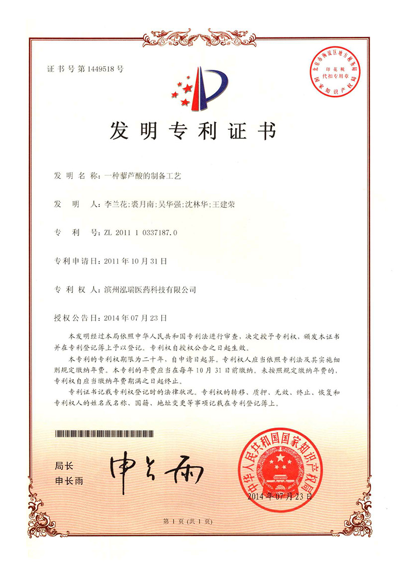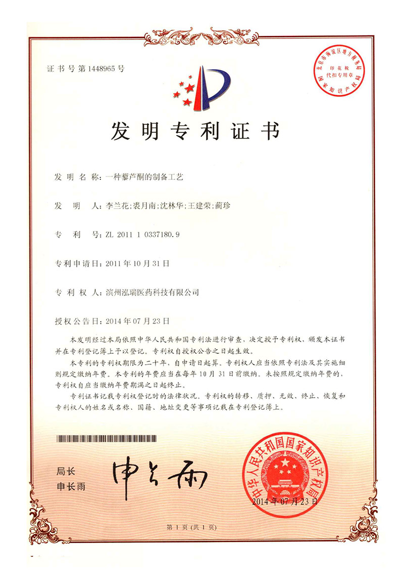 公司主要生產(chǎn)芳香族苯甲酸系列醫(yī)藥中間體:藜蘆醛、藜蘆酮、藜蘆酸、藜蘆醚、鹽酸金剛烷胺、3,4-二甲氧基苯丙氨酸等精細(xì)化工品,年產(chǎn)量達(dá)3600噸,產(chǎn)品銷(xiāo)往中國(guó)、印度、美國(guó)以及歐洲、南美等各國(guó)家。公司自成立以來(lái)非常注重產(chǎn)品的質(zhì)量保證及控制能力,部分產(chǎn)品通過(guò)ICH Q7A審計(jì),先后通過(guò)了通過(guò)ISO9001國(guó)際質(zhì)量體系認(rèn)證和ISO14001環(huán)境體系認(rèn)證,保障了公司質(zhì)量體系和環(huán)境體系的持續(xù)運(yùn)行,增加了客戶(hù)對(duì)我公司產(chǎn)品的信任度,增強(qiáng)了我公司在市場(chǎng)上的競(jìng)爭(zhēng)能力。公司擁有美國(guó)等國(guó)際專(zhuān)利4項(xiàng),36項(xiàng)國(guó)內(nèi)專(zhuān)利,先后與中科院上海有機(jī)所、浙江大學(xué)、濟(jì)南大學(xué)等高等院校開(kāi)展了科研合作,并與多家國(guó)內(nèi)外研發(fā)機(jī)構(gòu)進(jìn)行了多個(gè)項(xiàng)目的合作。